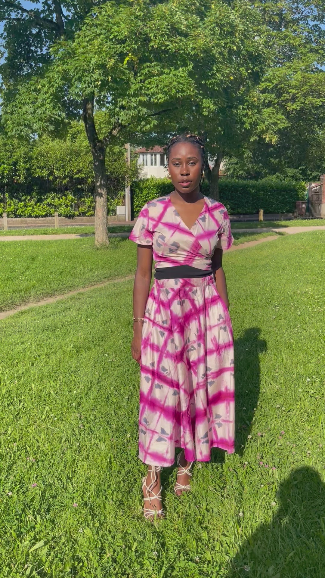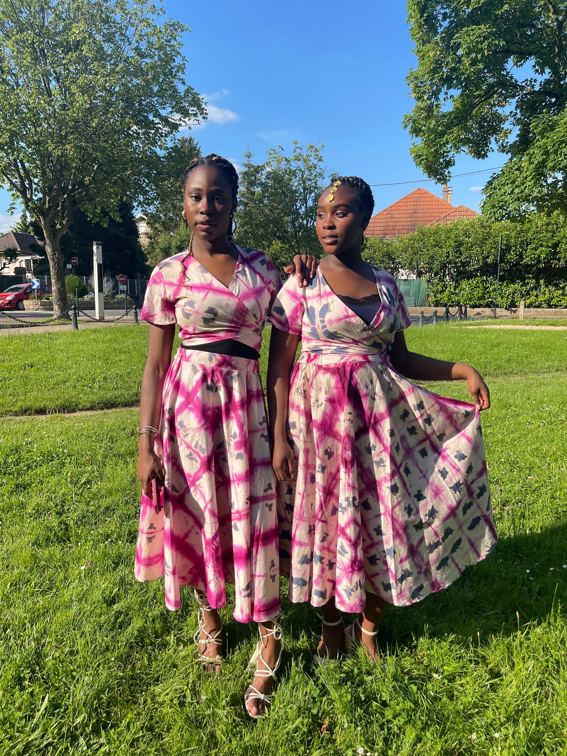 Ensemble « Koko » en coton fait avec le pagne traditionnel koko donda. Poches latérales et haut cache cœur.