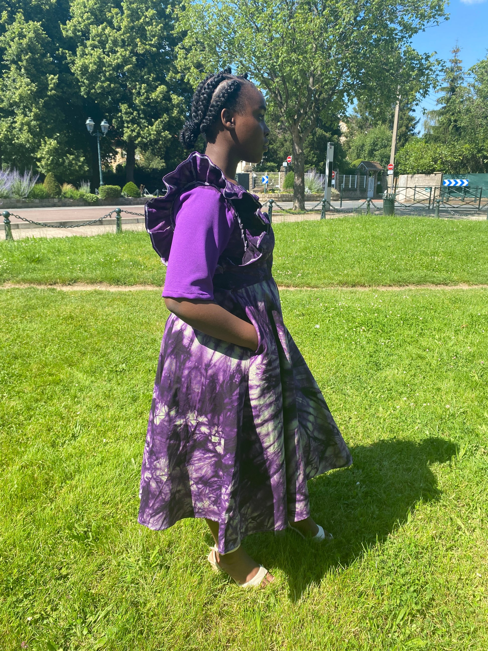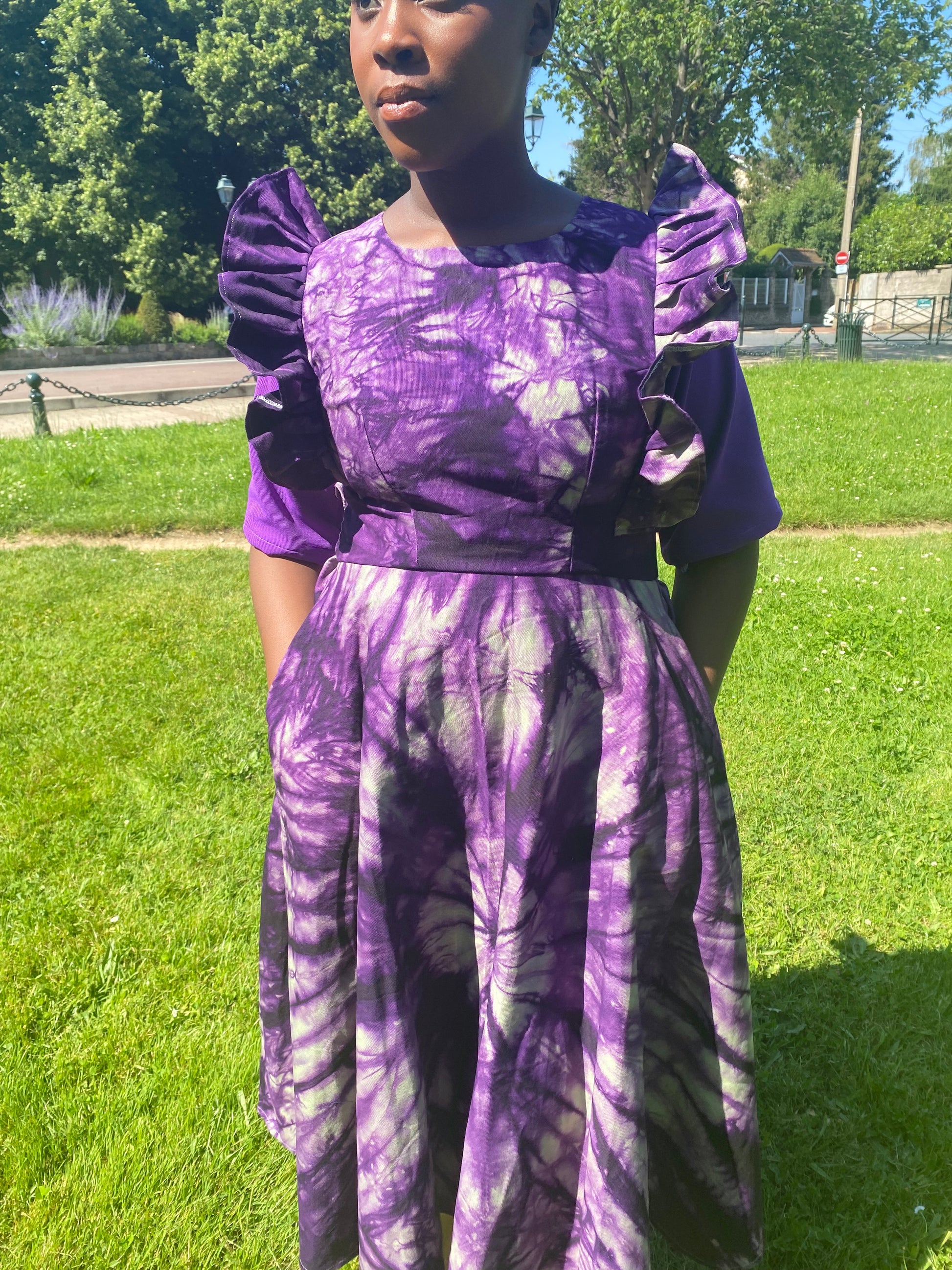 Robe violette en koko donda avec poches latérales.