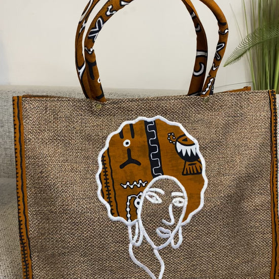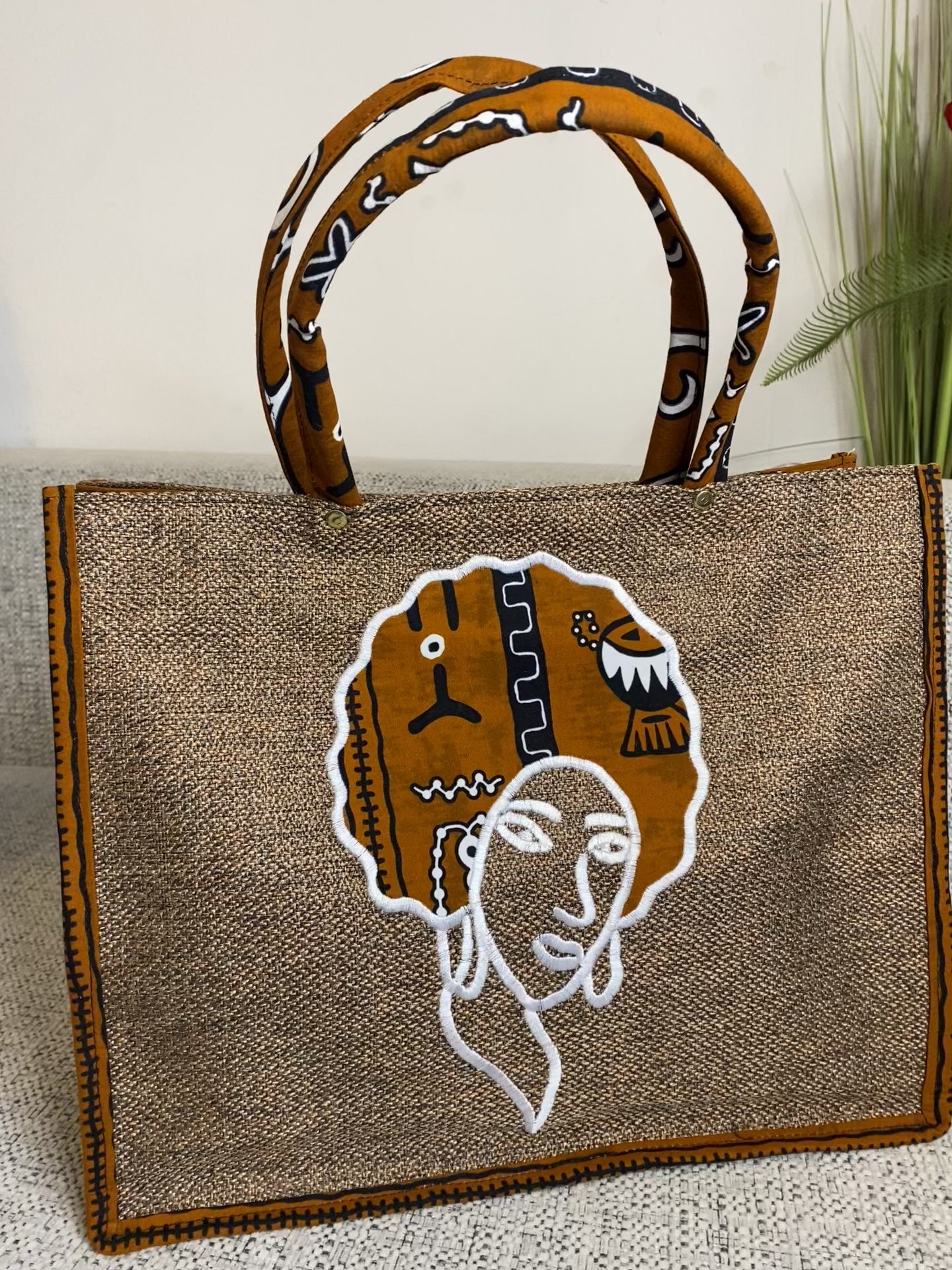 Sac à main style cabas en raphia traditionnel et en pagne wax. Le raphia, une fibre naturelle provenant des palmiers, est tissé de manière artisanale pour former la structure solide et résistante du sac. Le pagne wax, un tissu coloré et audacieux, est utilisé pour agrémenter le sac et lui donner une touche d'originalité.